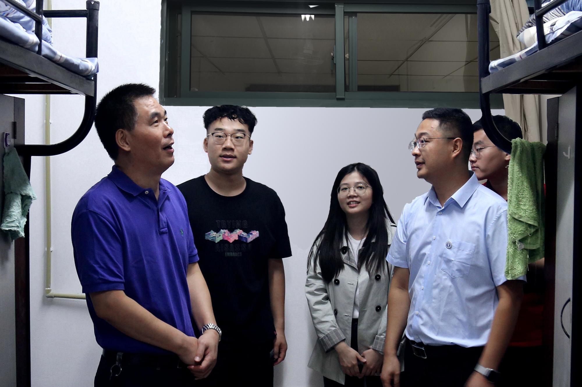 学院党委书记高顶、党委副书记李智走访新生宿舍