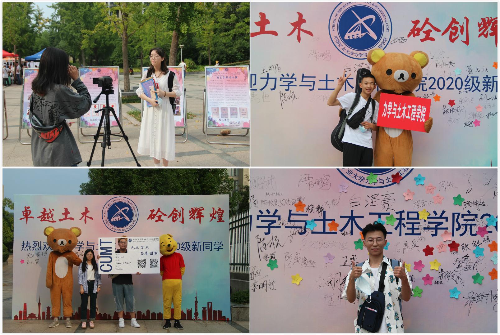 新生在学院展板、心愿墙前拍照留念