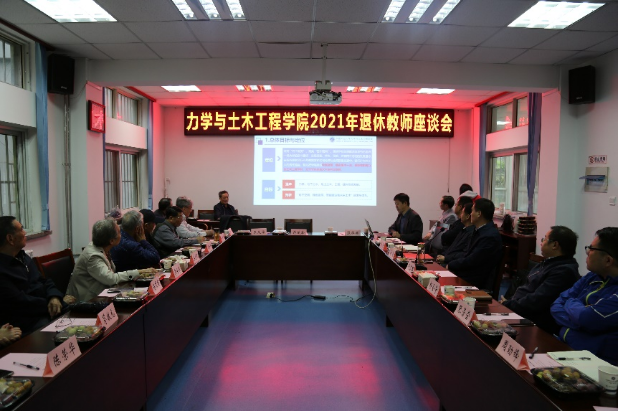 马占国院长向退休教师们汇报了近年来学院在人才培养、师资队伍建设、教学科研、研究生教育等方面的工作成绩,并重点介绍了学院在学科建设方面的规划和工作进展情况。他表示,近年来学院围绕学校、学院发展目标,在学科提档升级发展、“十四五”规划制定实施、深入落实党团建设任务等方面投入大量精力,取得了许多可喜的成绩。站在新起点,学院将继续在服务国家及行业战略需求和区域经济社会高质量发展的过程中,践行力学与土木人的责任担当。