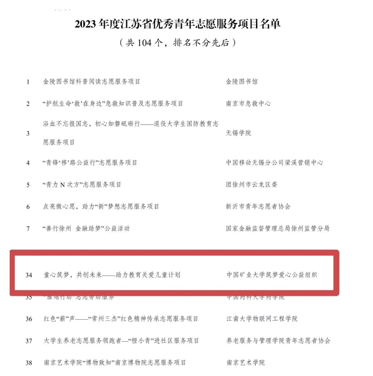 为认真落实习近平总书记对深入开展学雷锋活动的重要指示精神,积极培育和践行社会主义核心价值观,推动全省青年志愿服务事业广泛深入发展,江苏省青年志愿者协会开展了2023年全省青年志愿者行动先进典型评选活动。mg4355官网社团mg4355线路检测官网筑梦爱心公益组织推出的志愿服务项目“童心筑梦,共创未来——助力教育关爱儿童计划”在此次评选中荣获“2023年度江苏省优秀青年志愿者服务项目”荣誉。